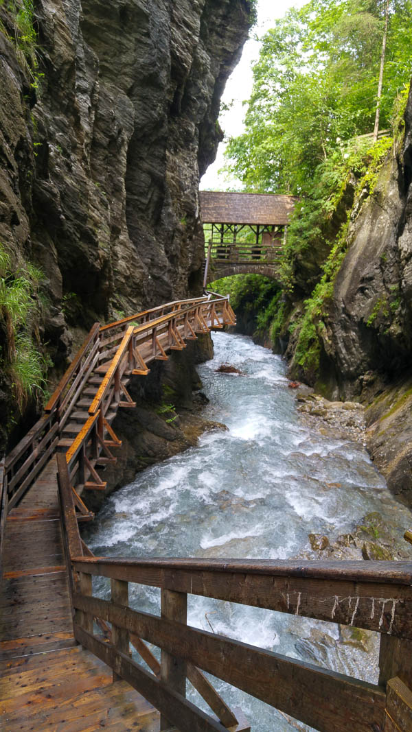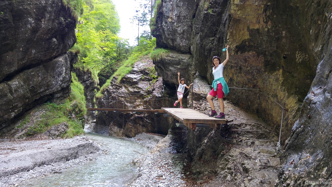 Am plecat de pe ghetar cand era ploaia la apogeu. Ne gandeam ca e bine ca ne-am ales si cu atat, asta ca si consolare. Dar departandu-ne de ghetar, ploaia era tot mai rara iar la un moment dar a incetat si … eram din nou in carti! La Kaprun este un renumit canion: Sigmund-Thun Klamm. Doua lucruri sunt impresionante. Unul, ce a putut sa sape un rau in stanca, pe asa o lungime de mare, si doi, lungimea pontonului amenajat de pe care se viziteaza canionul. Vrema a fost una rece, dar asta a fost motivul pentru care canionul ne-a oferit aproape un tur privat. Intoarcerea din canion a fost pe deasupra astfel incat se putea admira de sus “lucratura” – ponton din canion. In felul acesta putem spune ca am incheiat ziua cu toate obiectivele bifate. Din pacate a fost ziua in care nu am mai ajuns la piscina, dar a fost singura data cand am ratat-o. Oricum am incheiat ziua in sat la o inghetata.