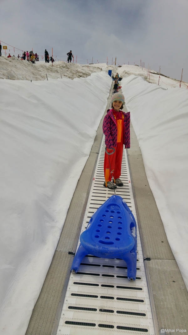 Oricum, sa te dai in iulie cu sania este o treaba. Unii practicau skiul. Ce era interesant era ca au acoperit ghetarul cu folie alba sa nu se mai topeasca. Panorama de sus este super. Se vede super lacul de la Zell am See.