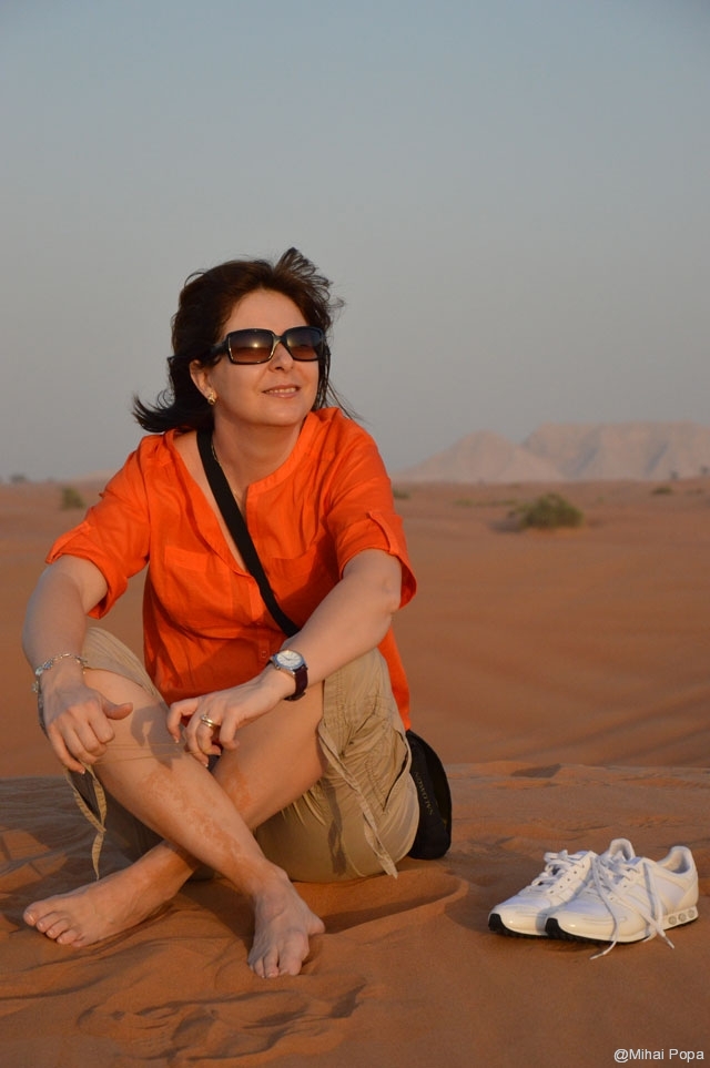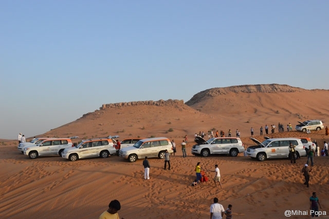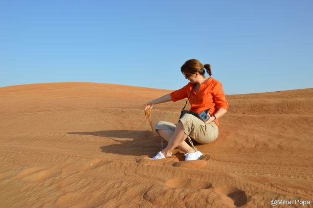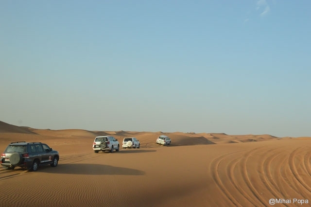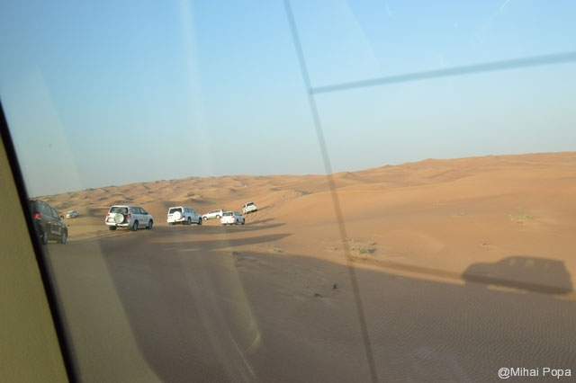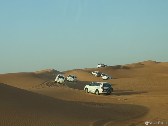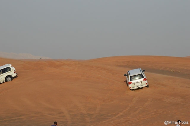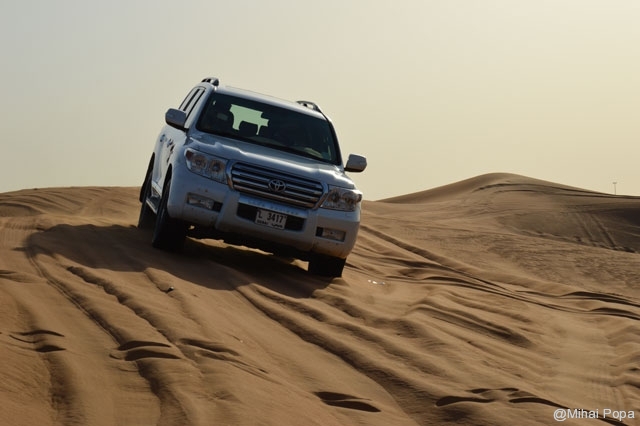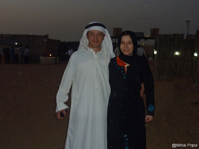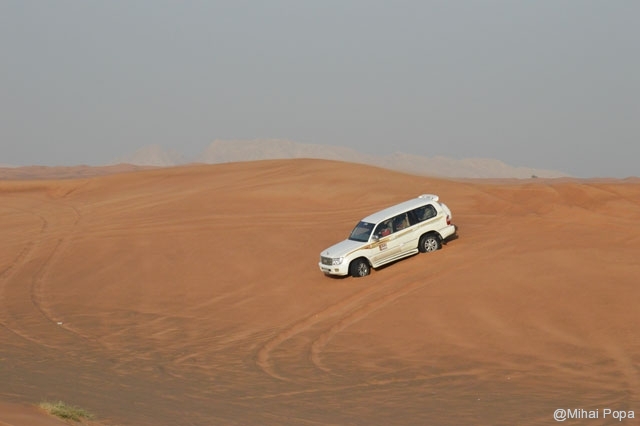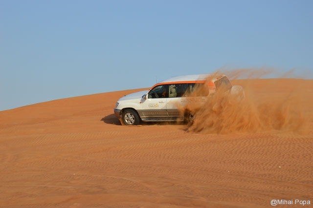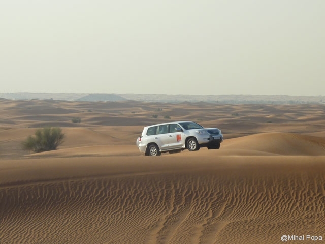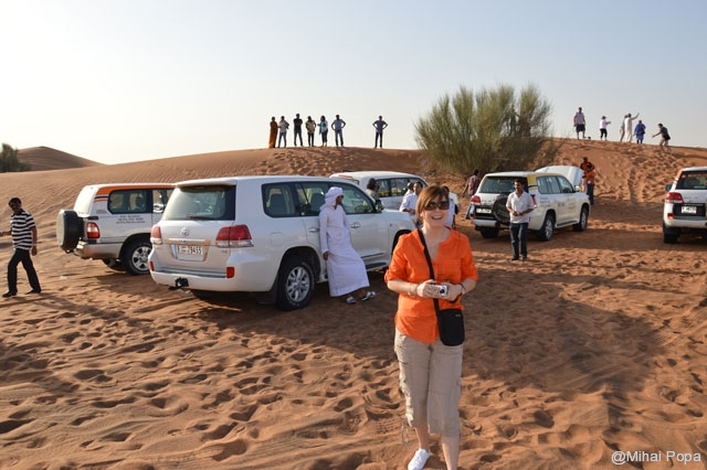 Dupa 2 zile petrecute alaturi de Adriana, Lau, Andra si Raluca am trecut la programul prin Dubai pe cont propriu. Am inceput cu o incursiune prin desertul care inconjoara orasul. Am avut parte de cateva ore de safari in plin desert. Senzatiile sunt faine iar soferii adevarati maestrii. Cred ca 90% din masinile care erau prin desert (erau sute de masini) erau Toyota Land Cruiser. Toata excursia a fost pana la asfintitul soarelui apoi programul a continuat intr-un campus in care am avut parte de cina traditionala araba presarat cu program artistic.