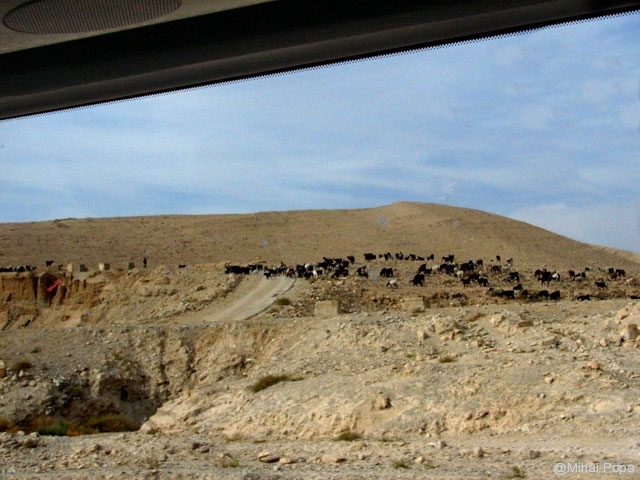 Primele impresii ale zilei au fost si unele din cele mai interesante din intreg circuitul. Trecem “granita” in Cisiordania sau Palestina, iar aici intalnim o alta lume. Viata se intinde cu precadere de-a lungul raului Iordan, unde pe km intregi sunt sere din care se culeg si cate 2 culturi pe an. Cred ca nici un strop de apa nu este risipit in acel loc. Se pare ca apa este chiar mai pretioasa ca pamantul acolo. Am fost impresionat de “gradini” organizate pe muntii de piatra care caracterizeaza acel loc. Cate nu am avea de invatat de la acei oameni!