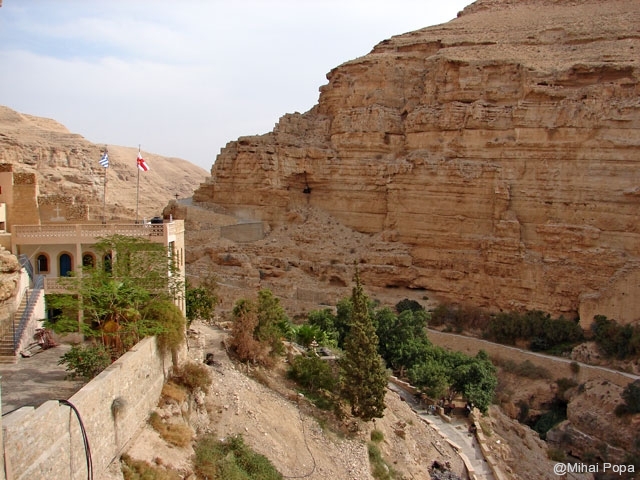 Prima destinatie a zilei a fost MÄnÄstirea Sfântul Gheorghe Hozevitul. Ne-a ajutat vremea, astfel incat drumul pe jos a fost parcurs fara probleme de toti membrii grupului. Pustiul Hozevei  in care este construita aceasta manastire pare desprinsa din alte lumi (parca eram pe Tatooine in Star Wars).
