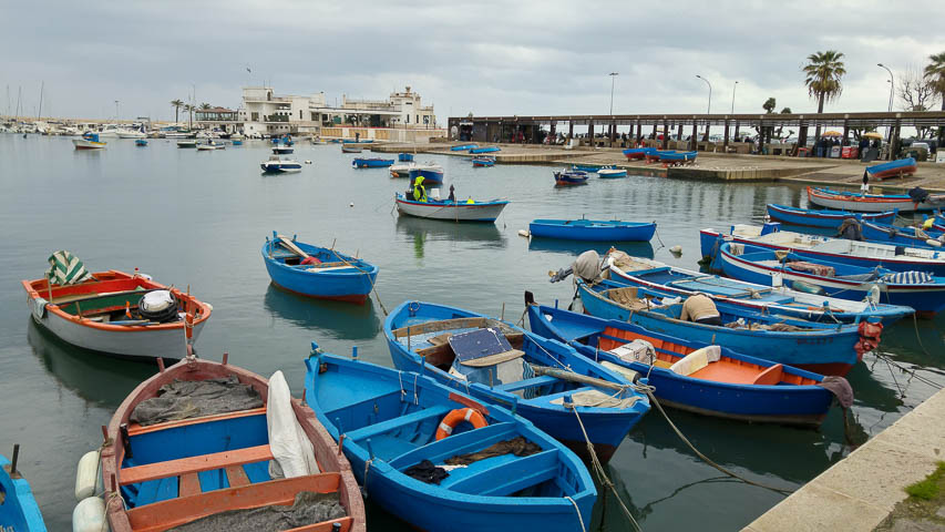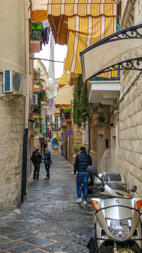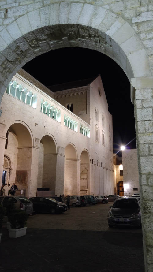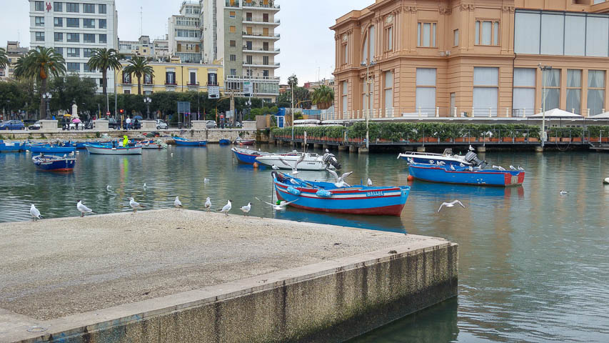 Seriile si jumatatea de zi din cea de-a 4 au fost petrecute in Bari. Orasul vechi, plin de stradute inguste, faleza de cativa km si aici sper sa nu exagerez si zona de corso – shopingaraia, unde de data asta ne-am mai lipit si noi de una alta. Nu de alta, dar ne-am dus cu tricouri si bluzite, ca de era, primavara, cel putin in capul nostru. Portul este de vizitat sa vezi pescarii cum vin cu cosuri intregi de “fructe” cu milioane de picioare si ochi de nu stiai la care sa uiti. Cica – delicatesuri! Numai barbati in port: unii la tarabe, altii la negociat, dar cam 80 % la bere si carti. Cultura, nu alta!